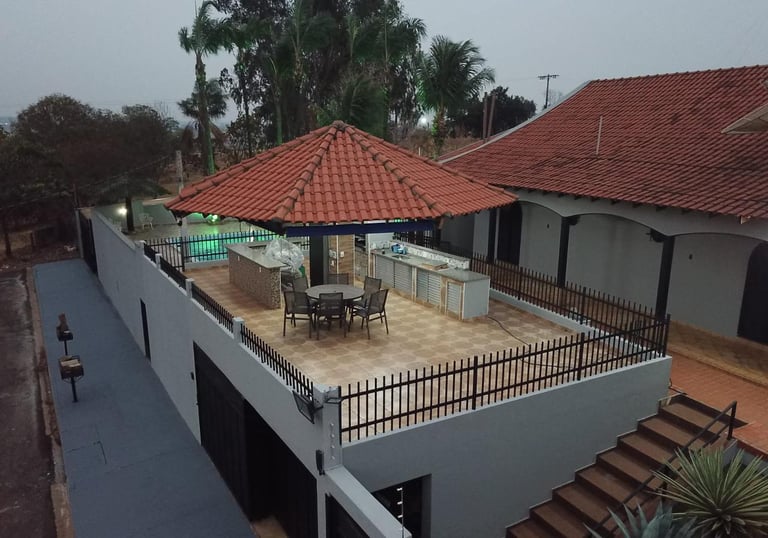 Ideal para relaxar e se refrescar, composto de freezer, cervejeira, churrasqueira giragrill, fogão e linha completa de utensílios.